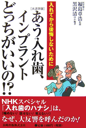 あう入れ歯、インプラントどっちがいいの!? 価格: 1,470円 レビュー評価: 5.0 レビュー数:1 大活字版 著者:黒沢清/福島章浩出版社:長崎出版サイズ:単行本ページ数:243p発行年月:2007年04月この著者の新着メールを登録する【内容情報】(「BOOK」データベースより)専門医がすすめる、あう入れ歯とは!?もっとも自然な歯に近づいた最新「入れ歯」情報。【目次】(「BOOK」データベースより)第1章 1000万人の人たちの歯の悩み・本音?NHKスペシャル「入れ歯のハナシ」はなぜ大反響を呼んだのか/第2章 入れてから後悔しないために?あう入れ歯、インプラントどっちがいいの!?/第3章 15年間の入れ歯専門クリニックの実績公開?あう入れ歯はここが違う!/第4章 究極の入れ歯作り?進化し続け Supported by 楽天ウェブサービス |