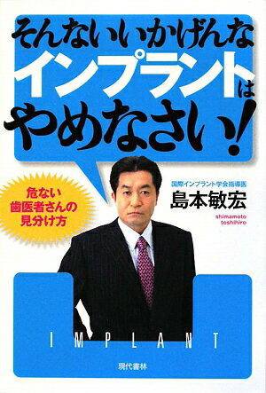 そんないいかげんなインプラントはやめなさい! 価格: 1,155円 レビュー評価: 0.0 レビュー数:0 危ない歯医者さんの見分け方 著者:島本敏宏出版社:現代書林サイズ:単行本ページ数:142p発行年月:2009年04月この著者の新着メールを登録する【内容情報】(「BOOK」データベースより)成功症例5000件の達人が語るインプラントで失敗しないための49カ条。【目次】(「BOOK」データベースより)はじめに 「歯医者氷河期」で、「にわかインプランター」が増殖している/第1章 ご存じですか?「任せられるインプランター」の条件を/第2章 患者さん、治療費の裏を知って賢くなりましょう/第3章 「未熟な歯科医とセンター」が使うウソと逃げ口上/第4章 「 Supported by 楽天ウェブサービス |